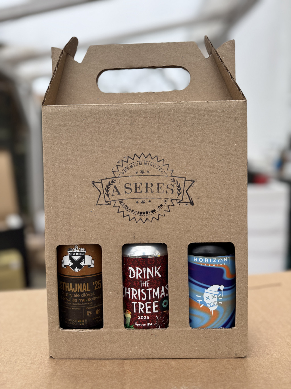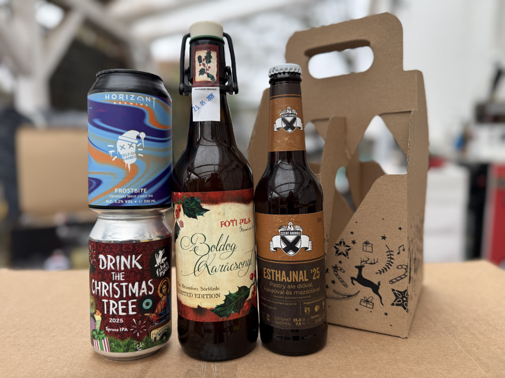 Három főzde, három ünnepi főzet. Szent András - Esthajnal '25 - A békésszentandrási Szent András Sörfőzde minden évben különleges ünnepi sörrel lepi meg a közönséget. Idén ez egy mazsolás kakaós diós pastry ale, azaz a folyékony Karácsonyi desszert! Fehér Nyúl - Drink the Christmas tree - Tűleveles IPA... egy fenyős, karakeres sörkülönlegesség Horizont - Frostbite - Karácsonyi fűszerezésű West Coast IPA. Illatában citrus, narancshéj és enyhe fenyőgyanta jelenik meg, amelyeket finoman kiegészít a fahéj, a szegfűszeg és a gyömbér. A korty száraz és tiszta, klasszikus West Coast komlókarakterrel, amelyhez elegánsan simulnak a visszafogott ünnepi fűszerek. A lecsengés hosszú, határozottan keserű, egy leheletnyi meleg fűszeres tónussal. (3x50 Ft DRS betétdíjat tartalmaz)