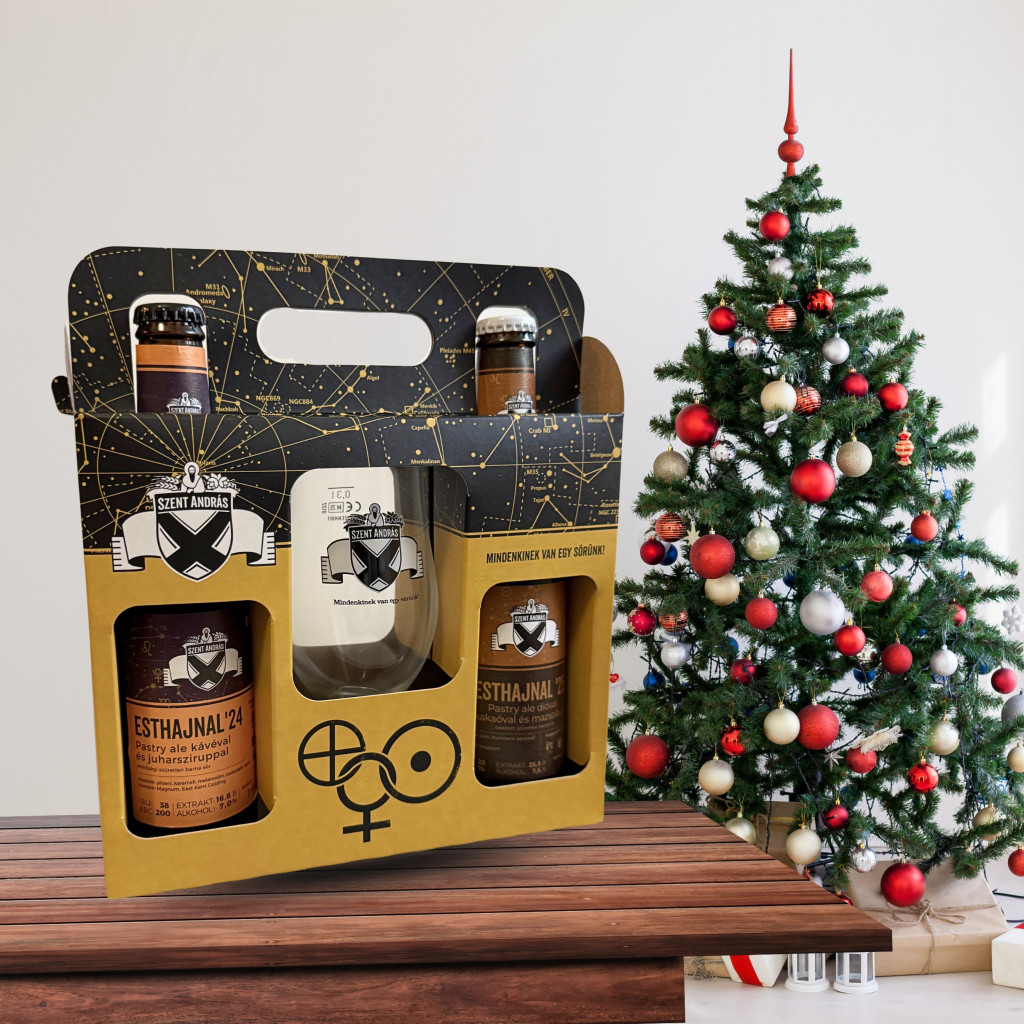 KORLÁTOZOTT DARABSZÁMBAN! A békésszentandrási Szent András Sörfőzde minden évben ünnepi főzettel lepi meg a sörkedvelőket. Csomagunkban egy 2024-es (pastry ale kávéval és juharsziruppal) és egy 2025-ös (diós mazsolás kakaós pastry ale) főzetet csomagoltunk össze egy Szent András logózott talpas kehellyel, melyből tökéletesen élvezhetőek ezek a limitált főzetek. Az ár 2x50 Ft DRS betétdíjat tartalmaz.