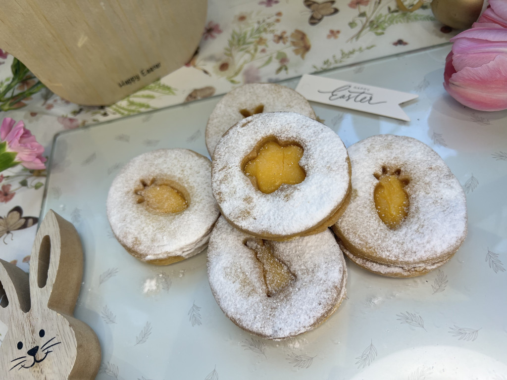 A szokásos mandulás omlós tésztából készűlt.