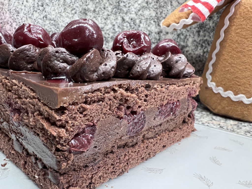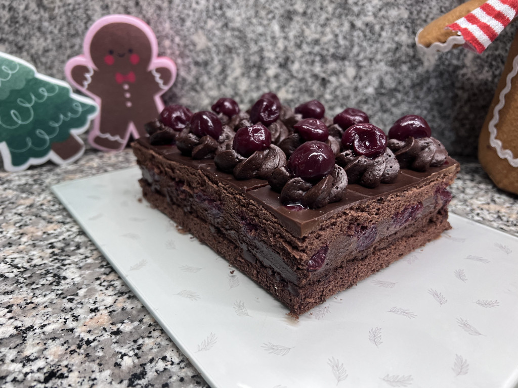 Igazi ínyencség. A 'klasszikus' Lúdláb szelettel ellentétben, nem sima párizsi krémmel van töltve, hanem egy selymes de mégis karakteres étcsokis krém kerül bele joooo sok meggyel.