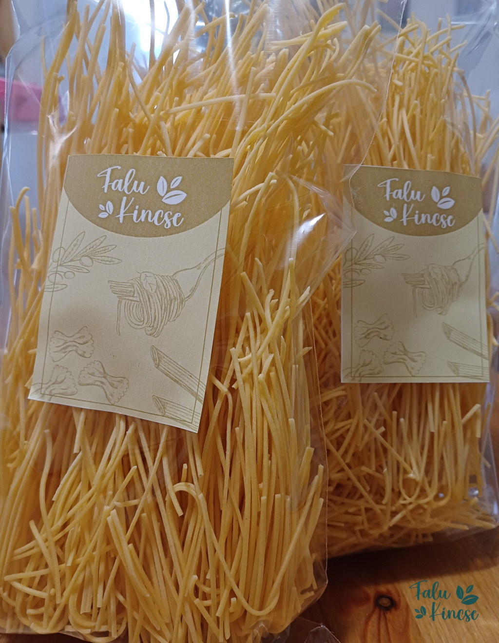 Saját tyúkjaim tojásából, kézzel gyúrva, géppel vágva, búzaréteslisztből készül.